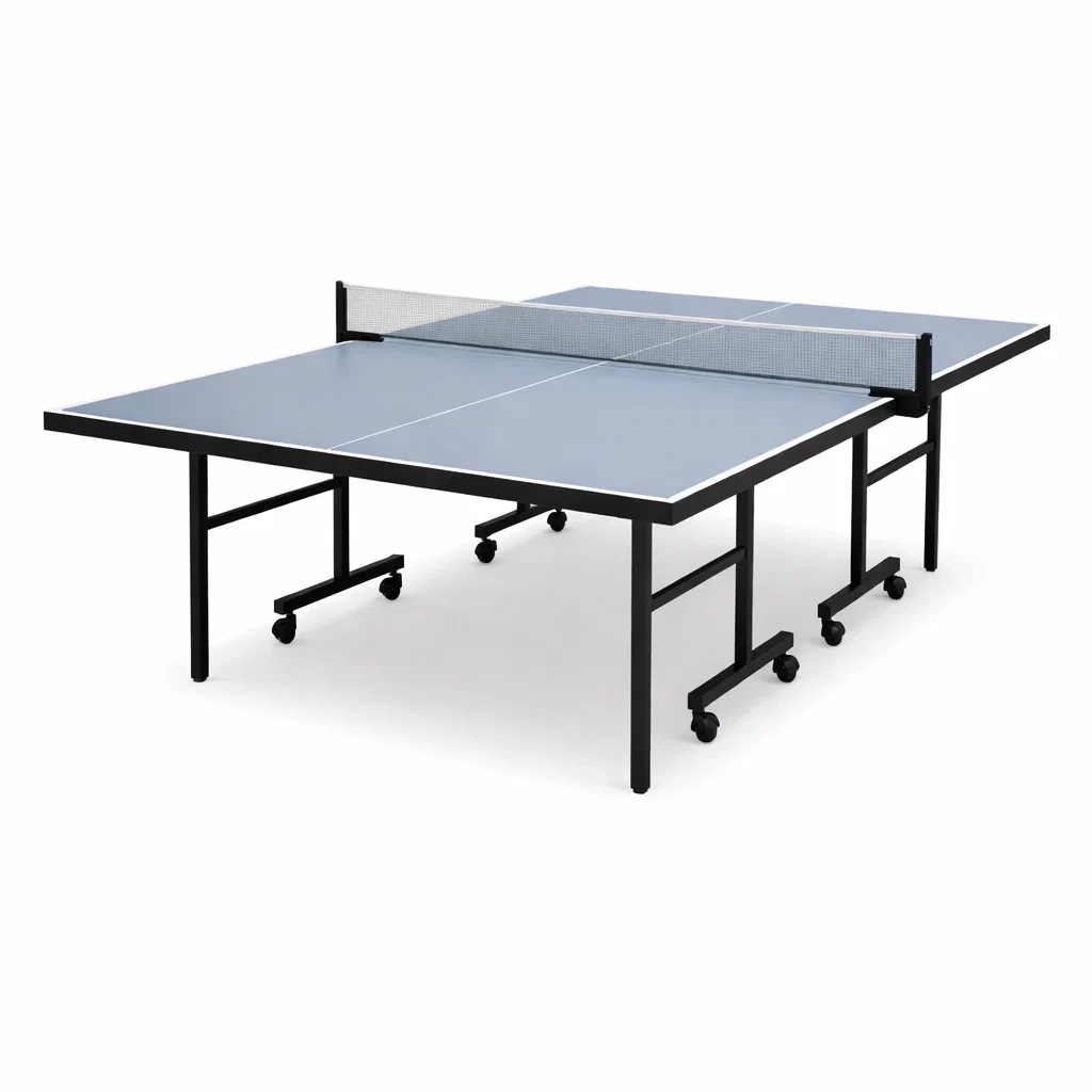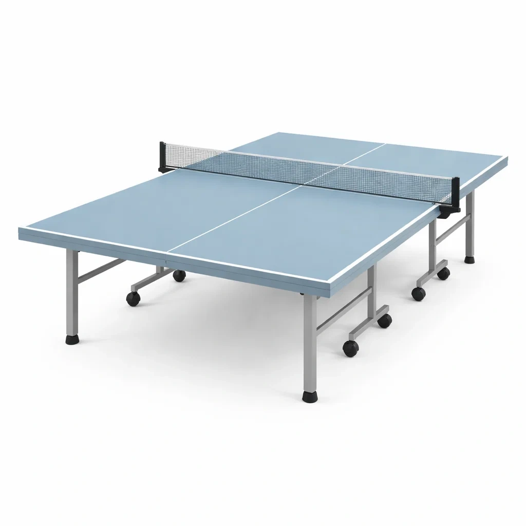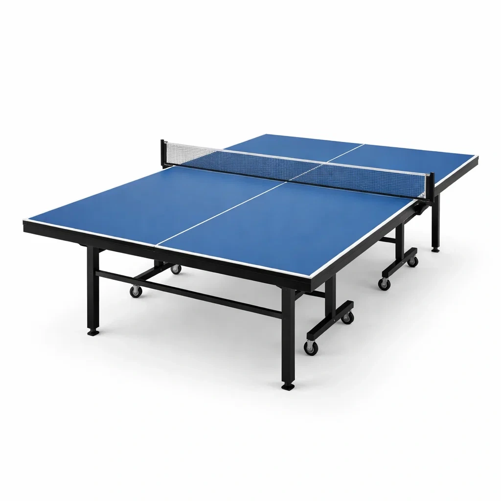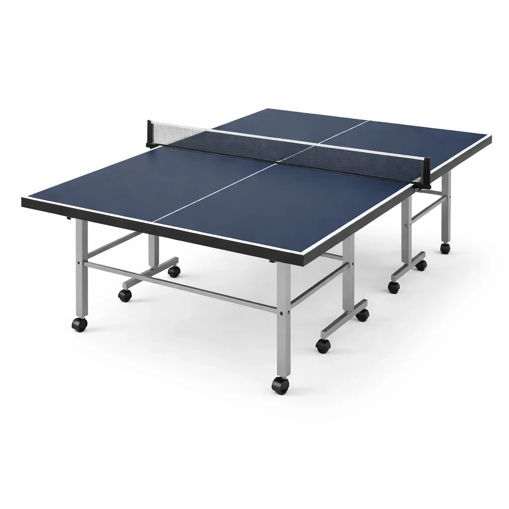 Table de ping pong pliable en bois mdf bleu avec roues